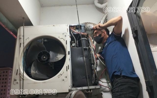 Kỹ thuật đang sửa điều hòa tại Thiên Đức nhanh chóng